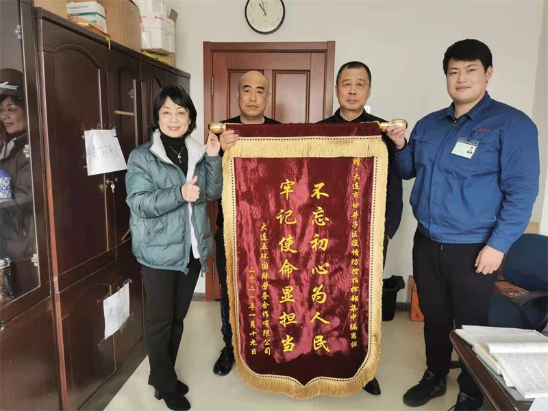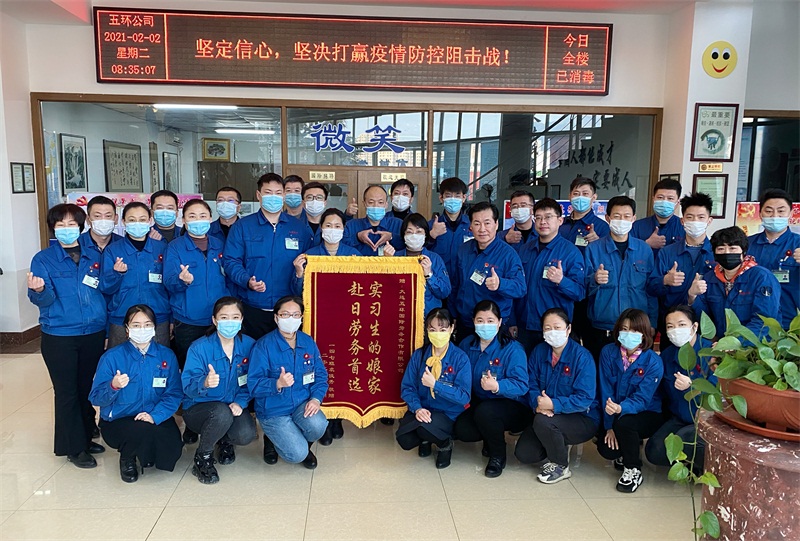 實習生袁俊秀為公司贈送錦旗 “感恩于五環(huán),家一般溫暖”